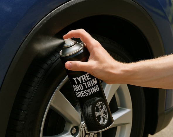 A high-quality, UV-resistant dressing is applied evenly to restore rich color and depth.
